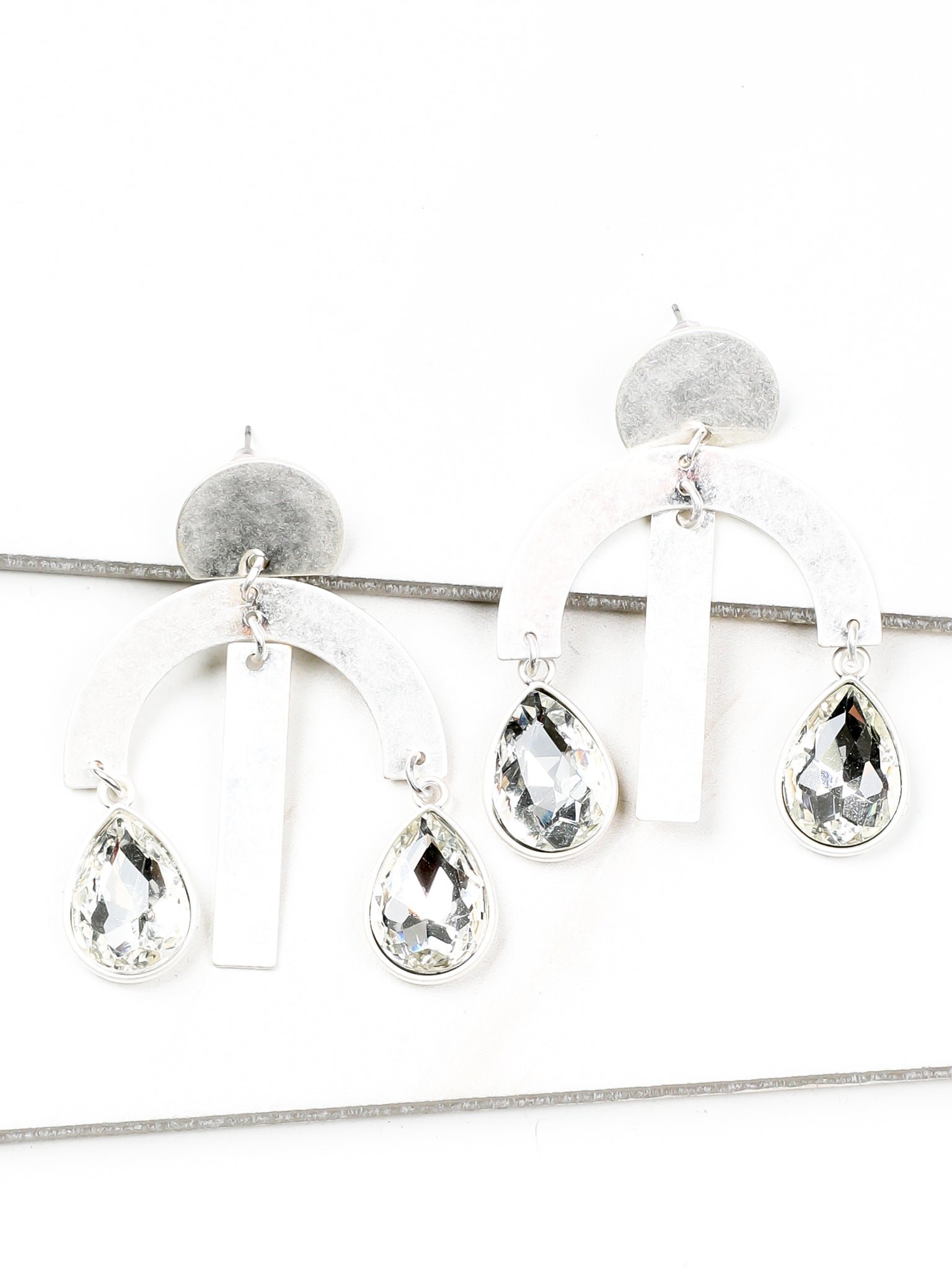 Geometric Silver Teardrop Dangle Earrings