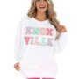You won’t find this adorable new pullover anywhere else! Featuring the oh so popular chenille letters in the prettiest pastel colors, this pullover is one of a kind! Dress it up with your favorite jeans or down with leggings or biker shorts, this sweatshirt is going to go fast, so don’t wait to grab yours!
