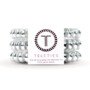 Hold your hair and enhance your style with TELETIES. The strong grip, no rip hair tie that doubles as a bracelet. Strong, pretty and stylish, TELETIES are designed to withstand everyday demands while taking your look to the next level. 100% of the proceeds from this pack will go to All Hands and Hearts, an organization that directly assists with immediate disaster relief and rebuilding efforts in the aftermath of Hurricane Dorian. Sold in packs of three. The small size is 4.5cm wide x 0.5cm thick.