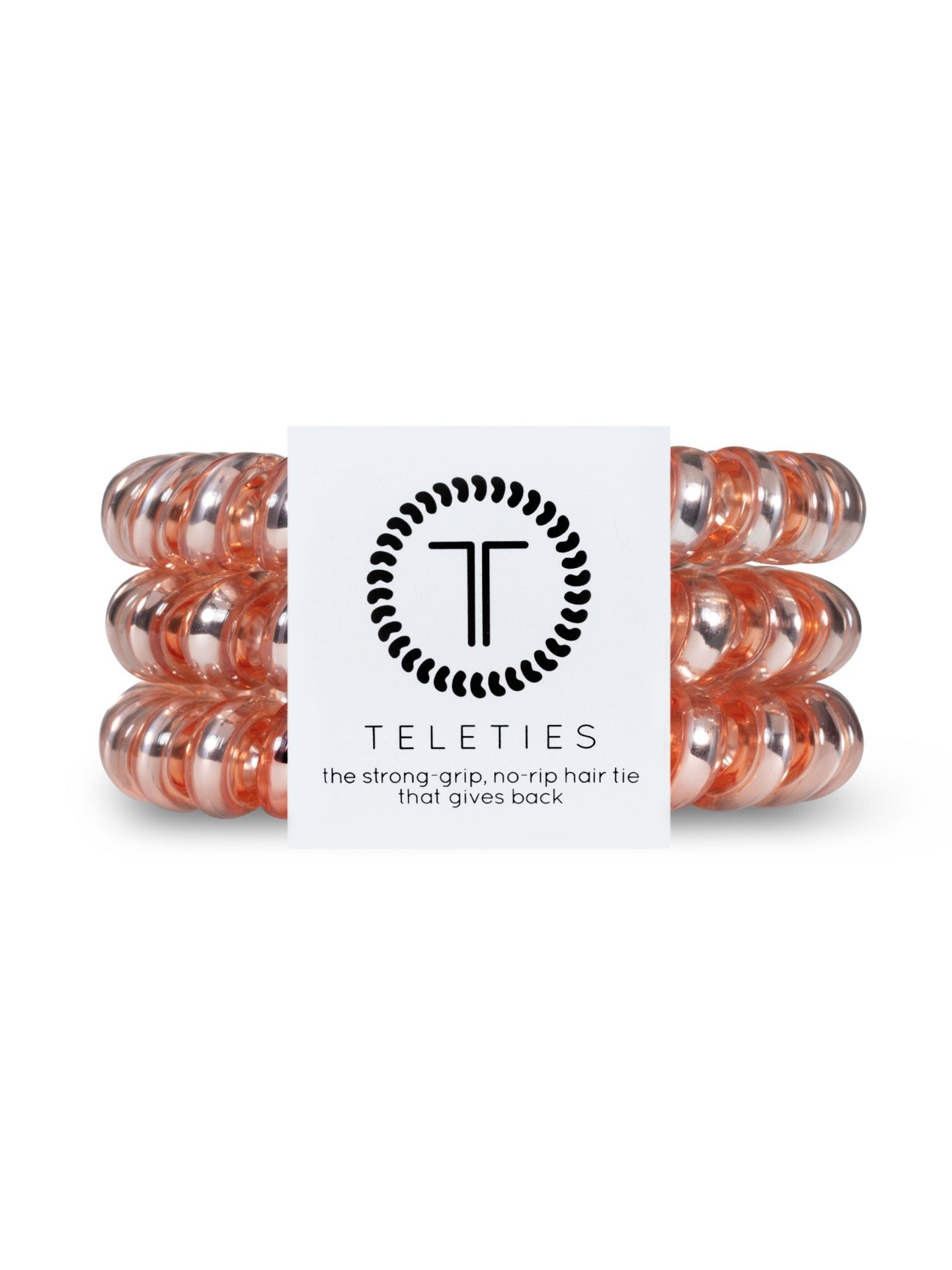 Hold your hair and enhance your style with TELETIES. The strong grip, no rip hair tie that doubles as a bracelet. Strong, pretty and stylish, TELETIES are designed to withstand everyday demands while taking your look to the next level. Sold in packs of three. The large size is 6.5cm wide x 1cm thick.